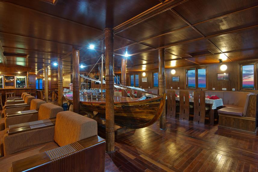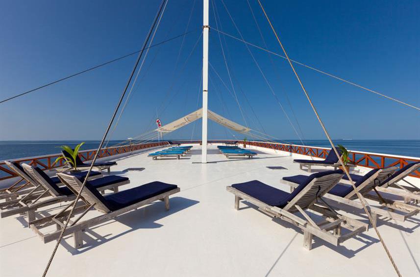 Im großen Salon wartet der Barmann mit einem kühlen Bier vom Fass, Cocktails, Softdrinks oder frischen Fruchtsäften. Unser Küchenchef bereitet abwechslungsreiche Gerichte aus lokalen Spezialitäten und europäischer Küche zu. Tanke Sonne pur auf dem riesigen Sonnendeck, relaxe im Whirlpool oder entspanne dch auf einem bequemen Liegestuhl im Schatten, während dich die Nautilus Two zum nächsten Ziel deines Tauchurlaubs auf den Malediven bringt.